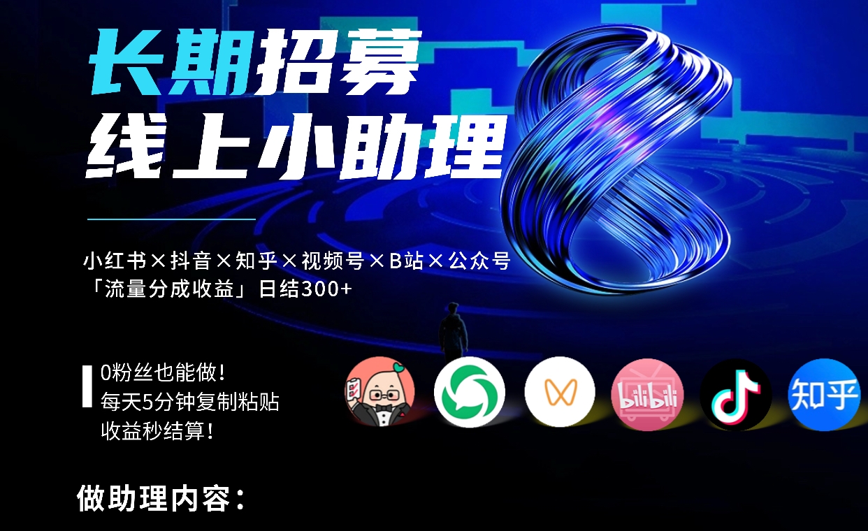 招聘线上小助理,简单易上手,实现生活费自由——长期合作,多劳多得